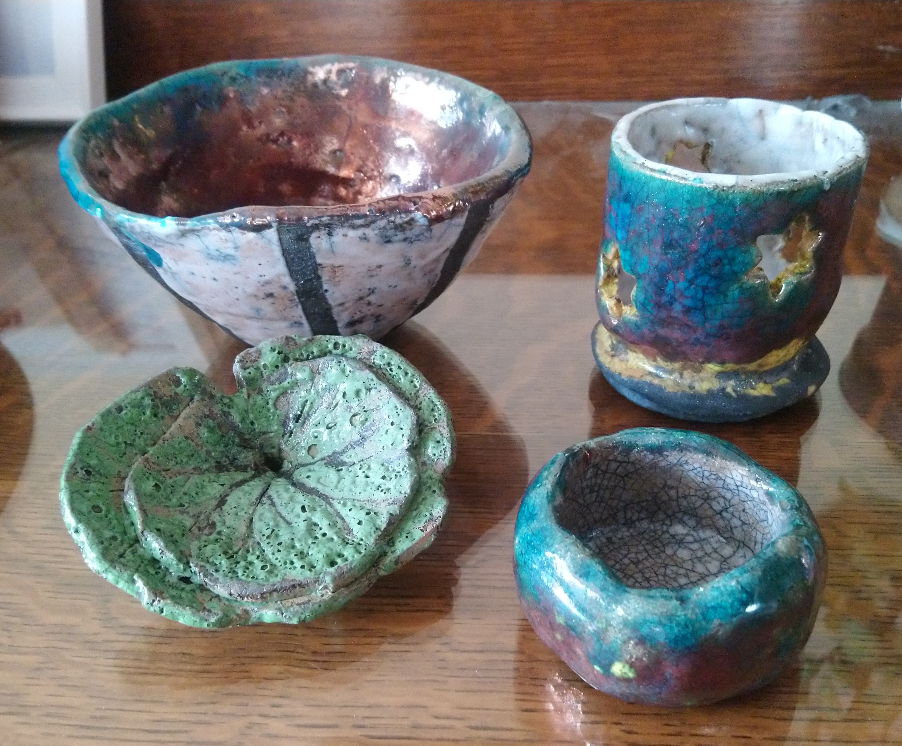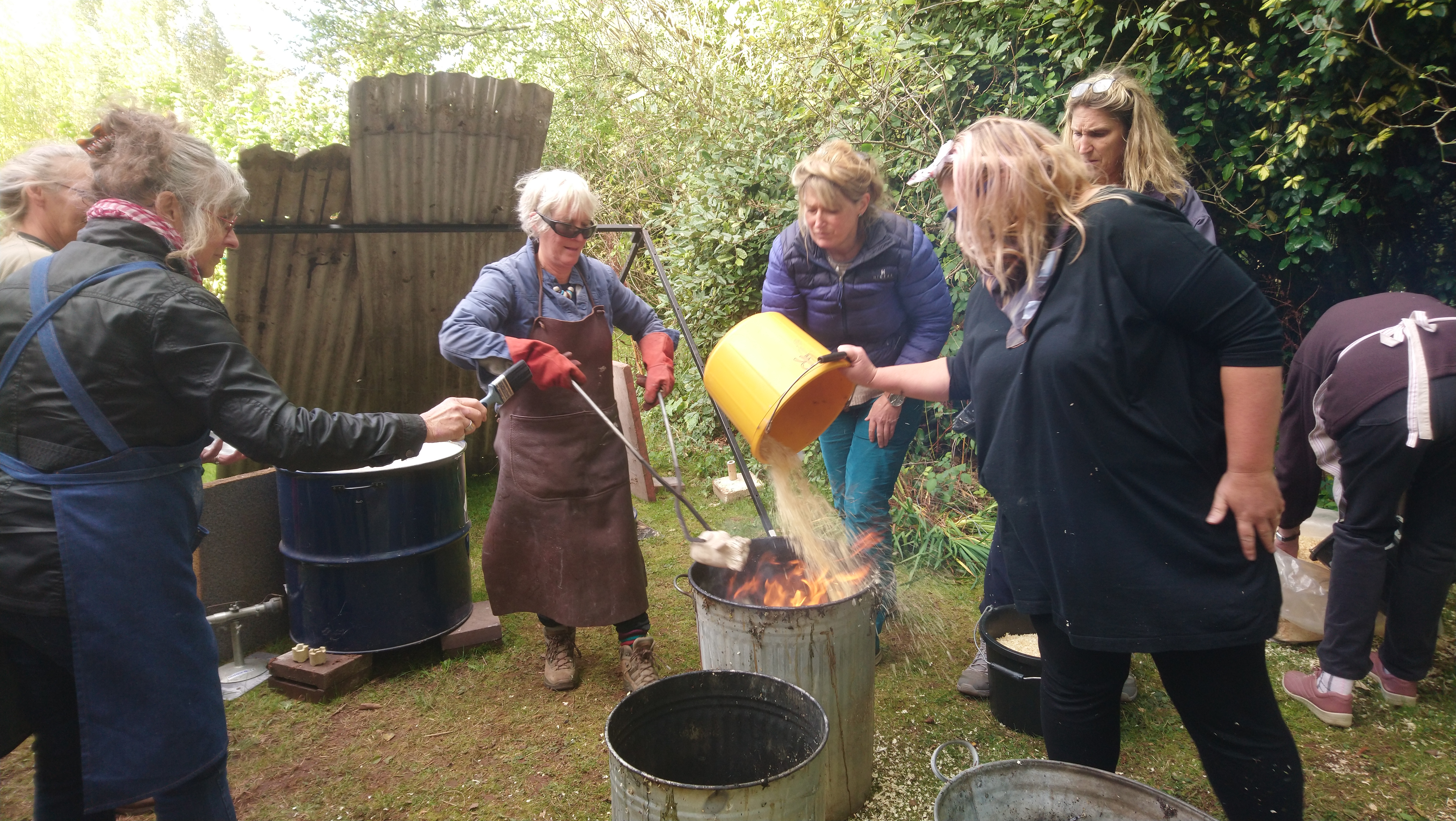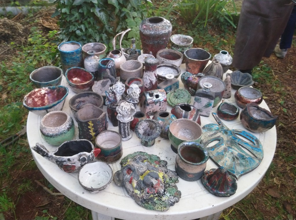 In October 2019, Exmouth Ceramic Group members and students took part in a Raku glazing and firing day at Organic Arts, West Town Farm, Ide (nr Exeter).