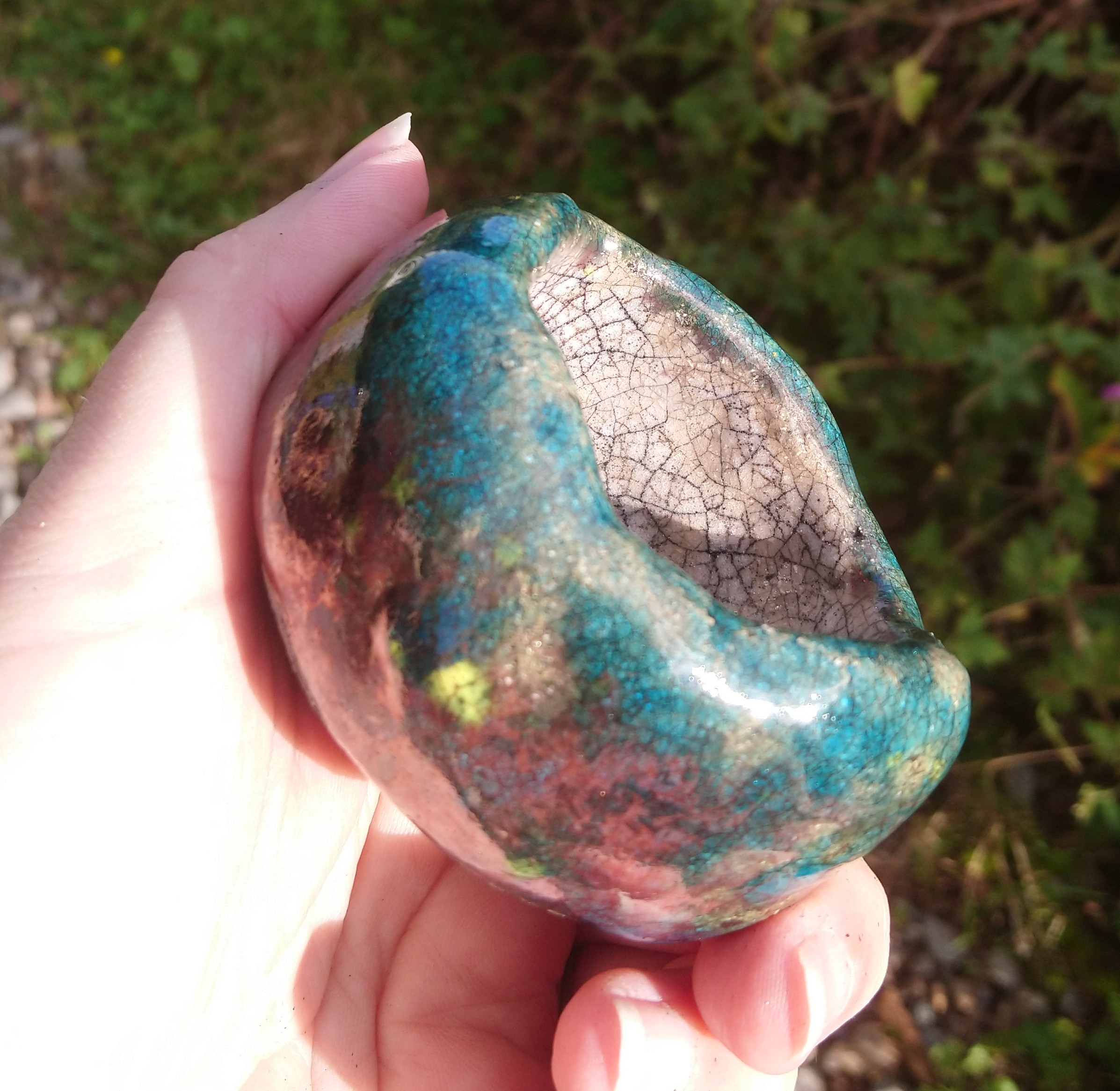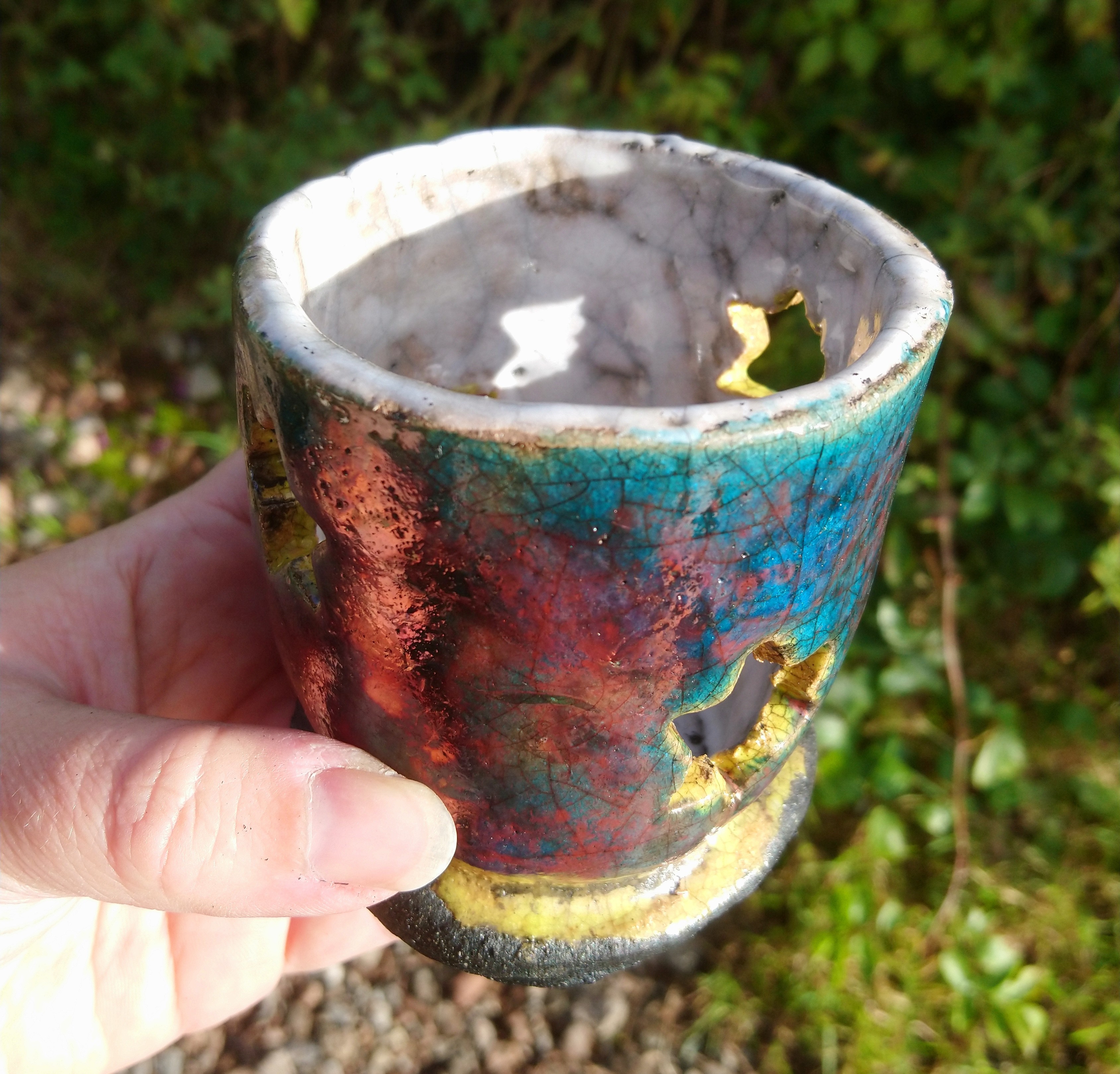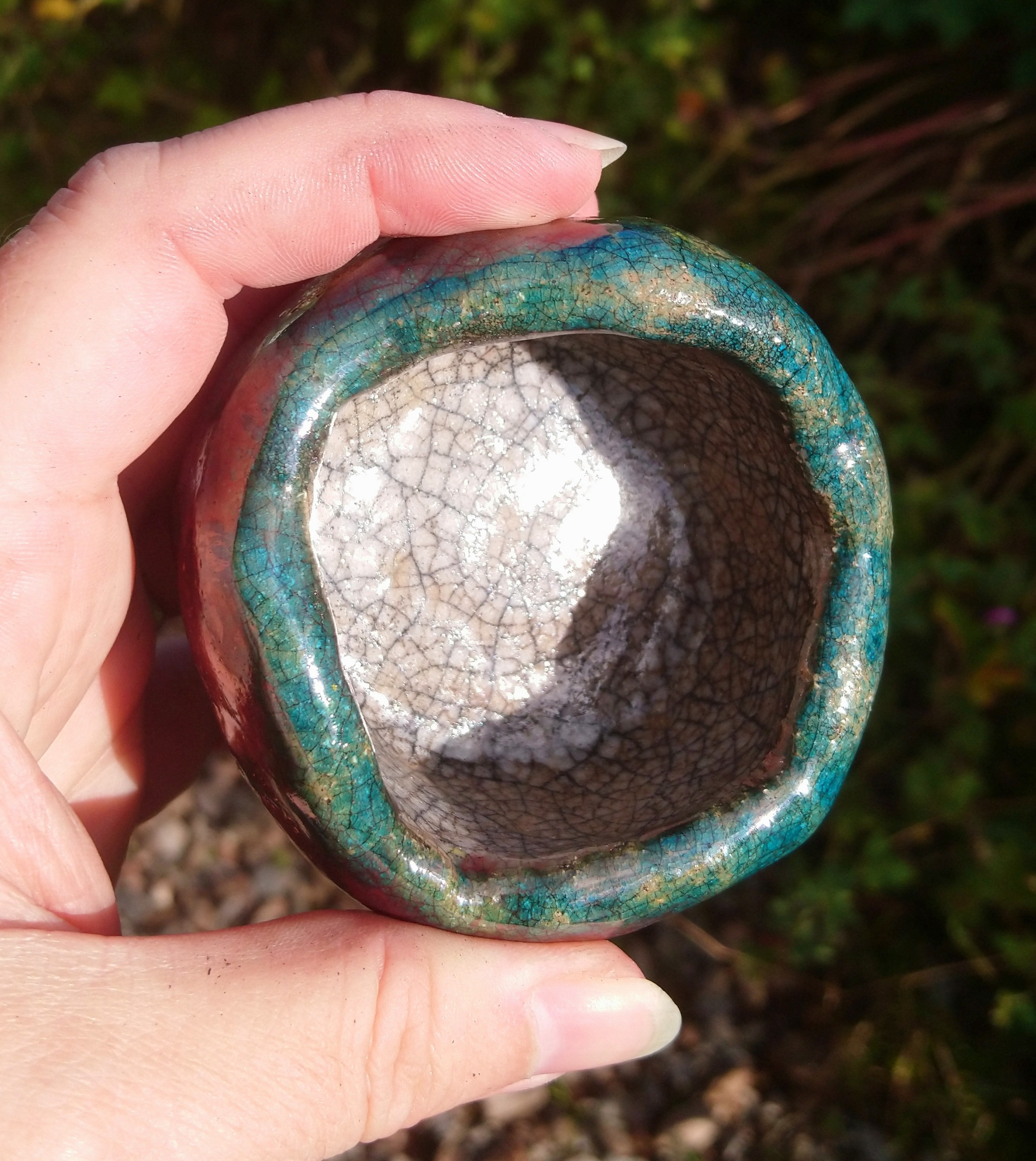 We each made a few pieces out of Raku clay and brought them along to the workshop, already bisque-fired. We learnt how to fire our work in the outdoor kilns, using specialist glazes to create the authentic Japanese style of ceramic firing.