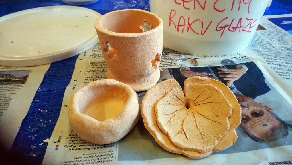 I created a couple of night light holders, an incense stick holder and a bowl for the day. I had no idea of how the glazes would turn out after the firing but I experimented with the the turquoise glaze (which could turn copper depending on the atmosphere it was exposed to), and also the large and small crackle glazes.